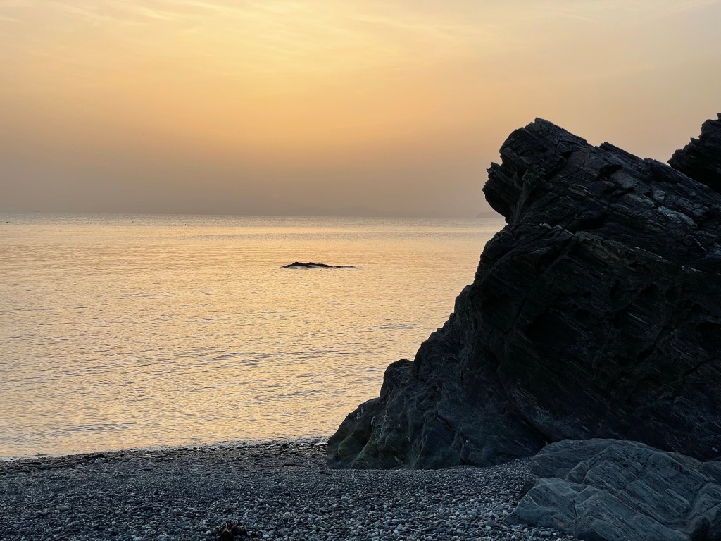 Sunset on Nushima looking toward Shikoku. Prelude to 10 hours of sleep.