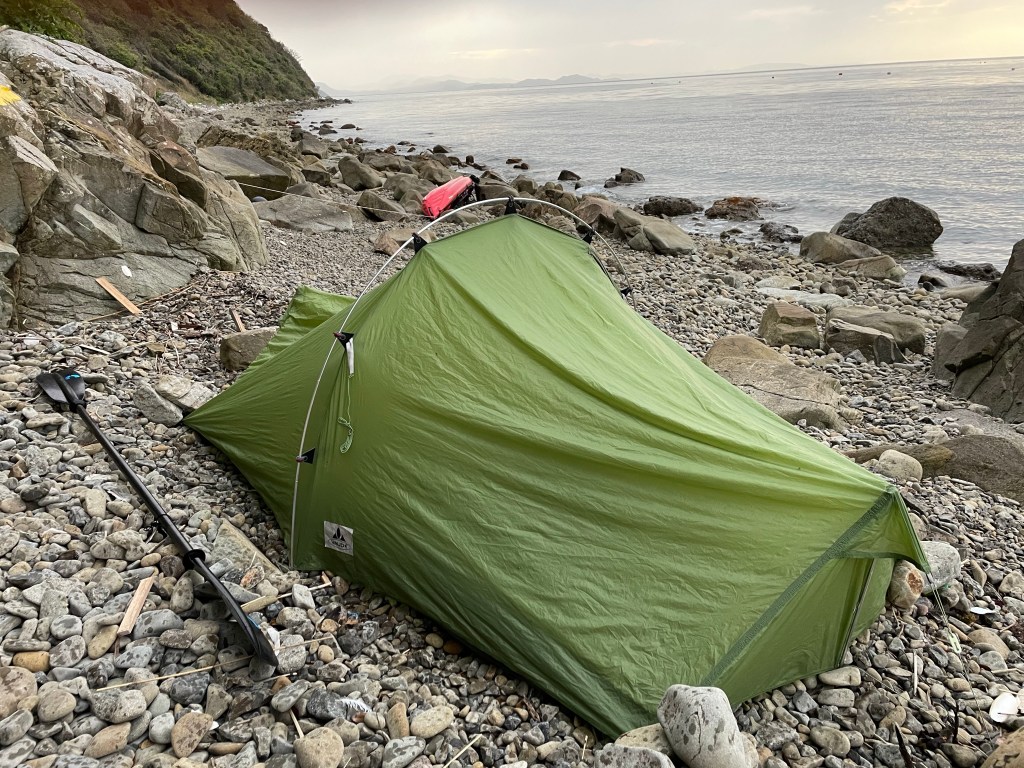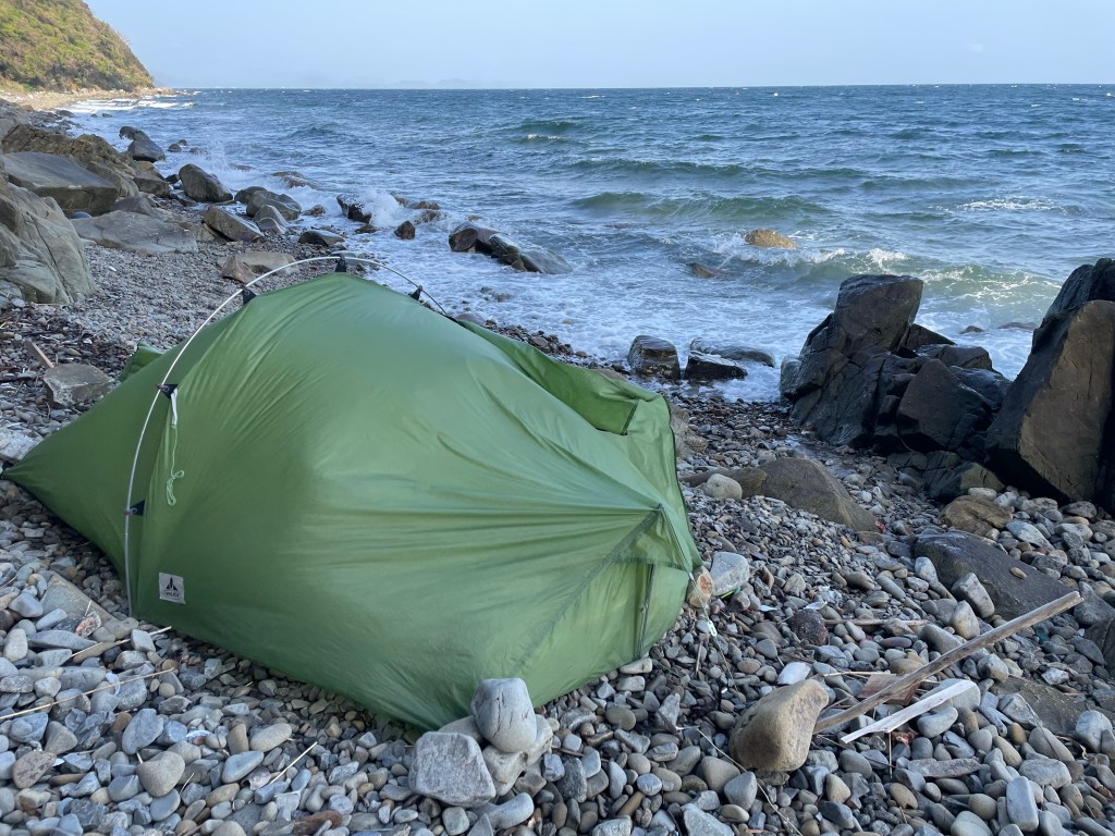 Made it to Nushima in six hours without stopping for 30 km. Camped on secluded beach. Video : https://youtu.be/70spGoPjYfw