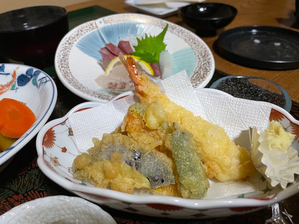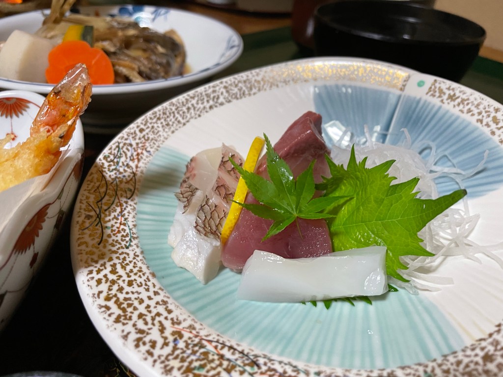 Arrived unannounced, cold, wet and bleeding from scratches caused by a ladder rung breaking as I tried to climb out of the kayak. I was given a tatami room, a yukata, hot Sencha tea, and a soaking bath followed by a sumptuous dinner in my room